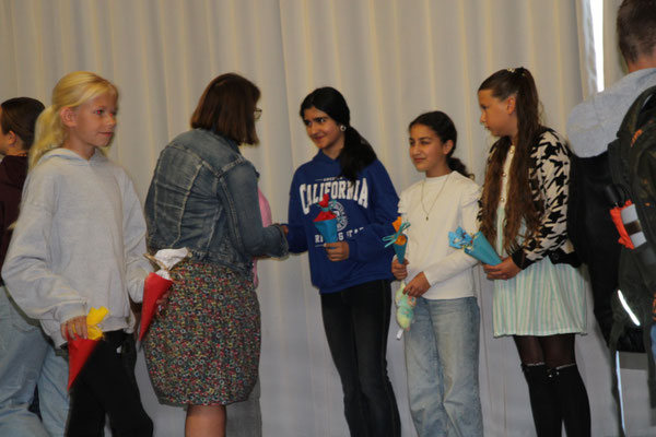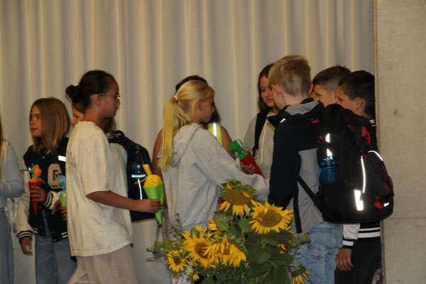 42 Quereinsteigende, 13 Vorklassenkinder, 28 Erstklässlerinnen und Erstklässler sowie 40 Fünftklässlerinnen. An drei Tagen wurden sie in der Aula empfangen und von dort in ihre neuen Klassen